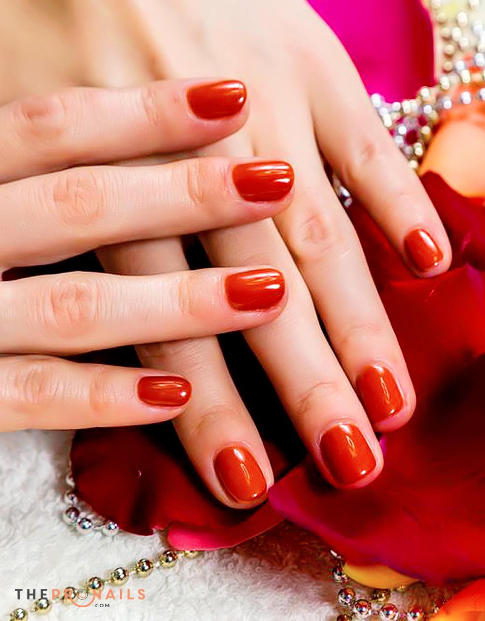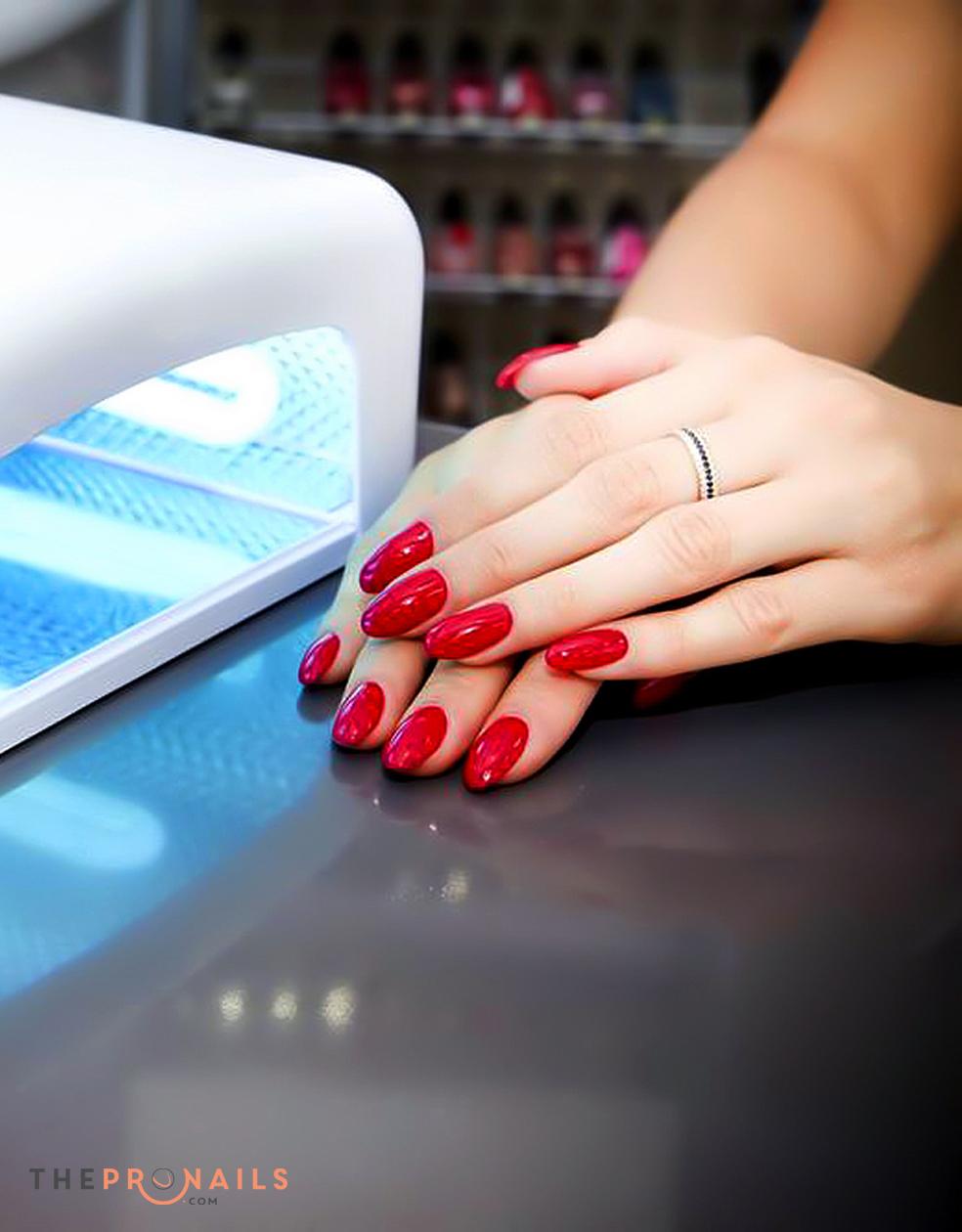 Step 8: Complete the rest of the nail application process, which involves curing under a UV light, buffing and sealing.